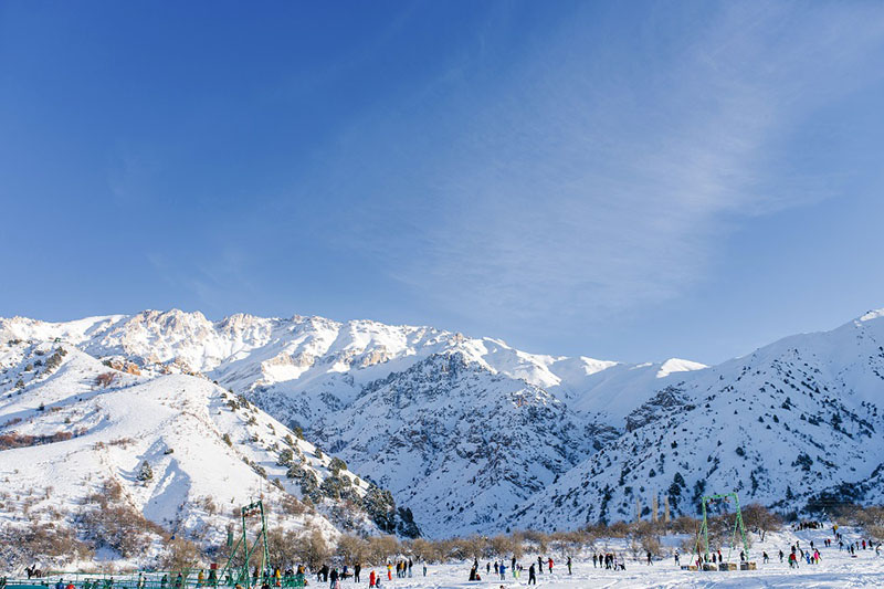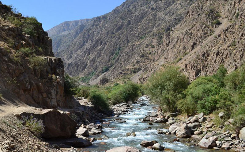 The mountains and foothills are about 1/5 part of the country. The east of the country is dominated by middle and high landforms. within the republic. Within the territory of the country there are the slopes or the closure of the West Tien Shan (Ugam, Pskem, Chatkalskiy, Kurama) and the Pamir-Alai (Zeravshan, Turkestan, Hissar, Kugitangtau Baysuntau). To the south and west, they gradually fall and into the plains. Stretch between mountains large cavities: Kashkadarya, Surkhandarya, Zarafshan, Samarkand are located. The largest intermountain trough - Ferghana hollow (valley) - lenght 370 kilometers and width up to 190 kilometers. On three sides of it are surrounded by the mountain ranges and is opened only from the west.